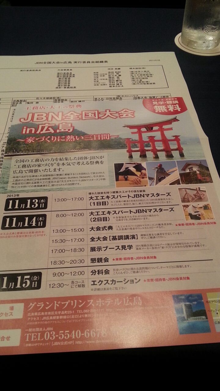 全国の工務店(約3000社)の団体であるJBNの全国大会が広島で開催されます。 開催日は11月13日(水)14日(木)15日(金) 場所は宇品の グランドプリンスホテル 全国から工務店、関係者が600人近く集まる予定です […]