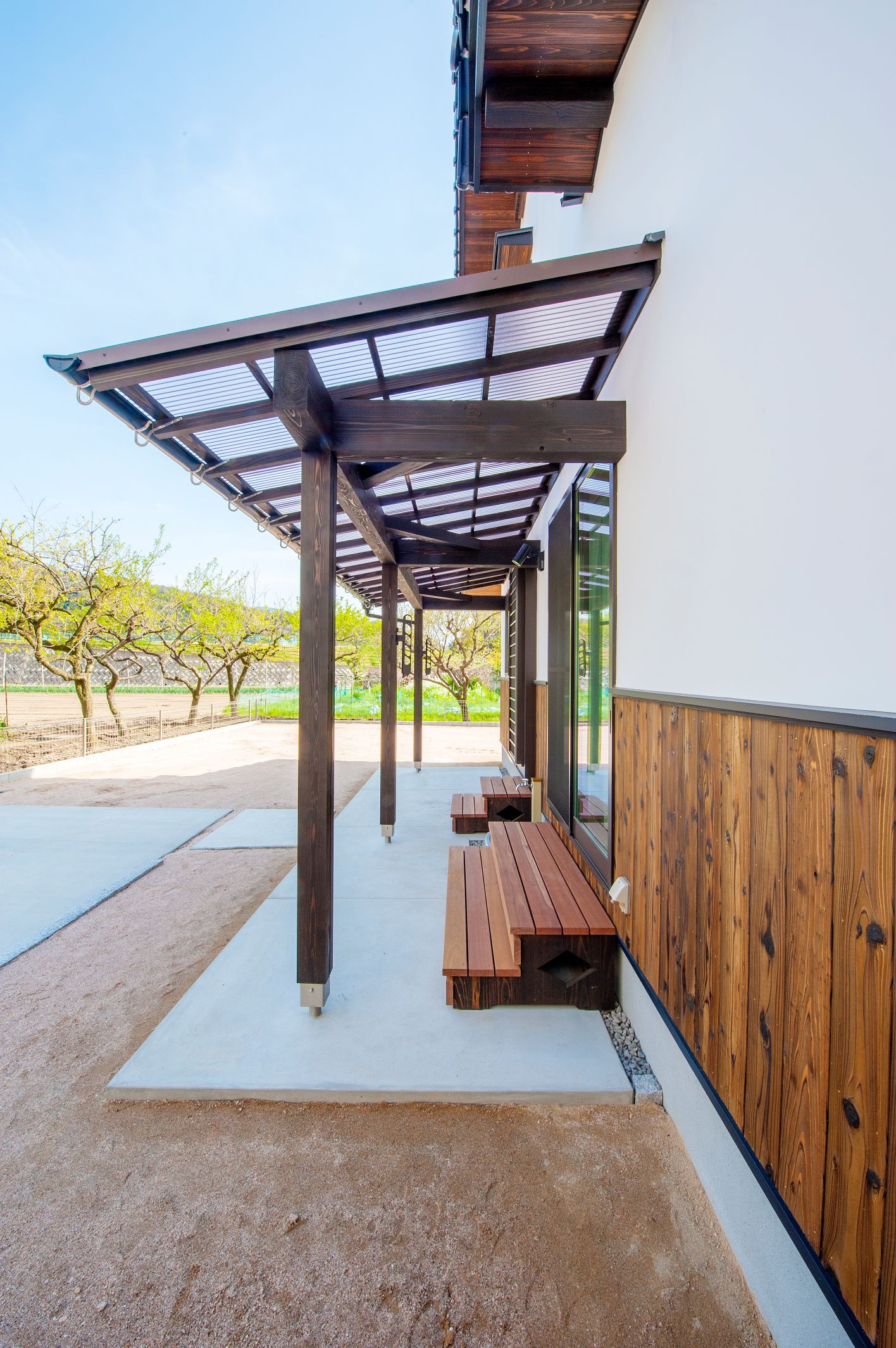 キッチンの勝手口の外には、屋根のかかった物干しスペースが