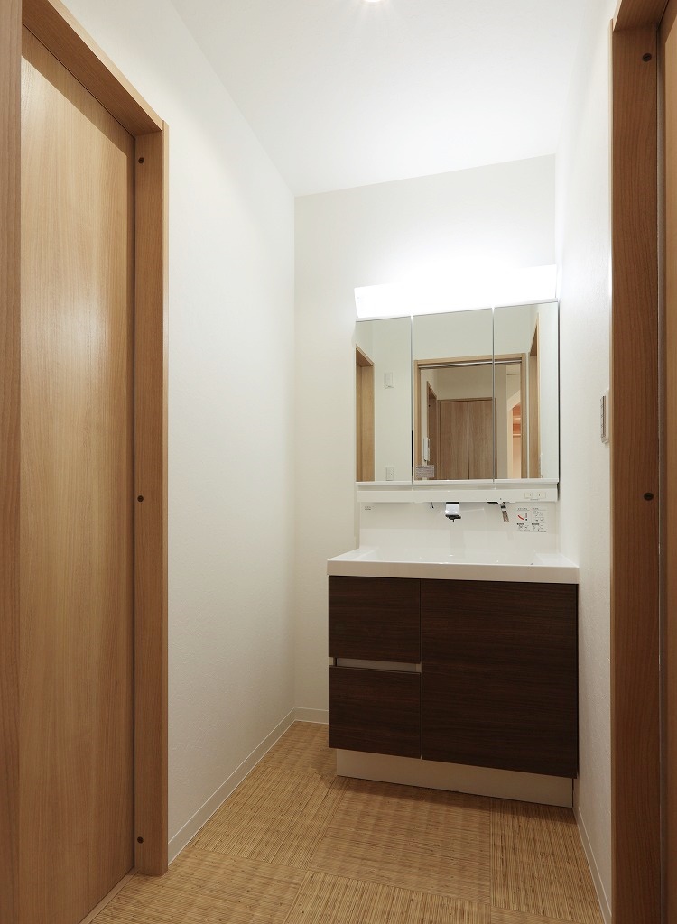 洗面室 左手がトイレ、右手が脱衣室になっている